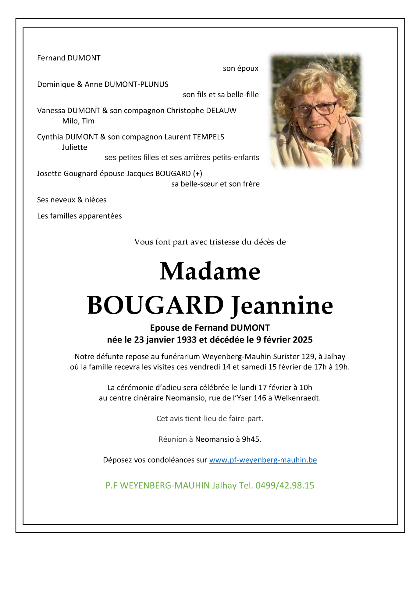 Overleden te Verviers (4800) op zondag 9 februari 2025 op 92-jarige leeftijd