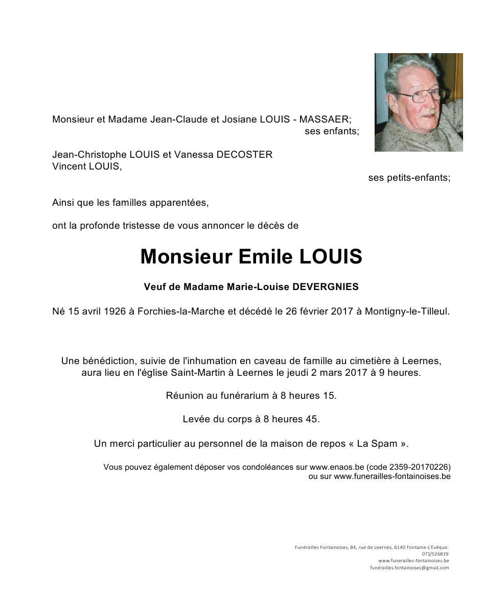 Died in Montigny-le-Tilleul (6110) on 26 February 2017 at the age of 90 years