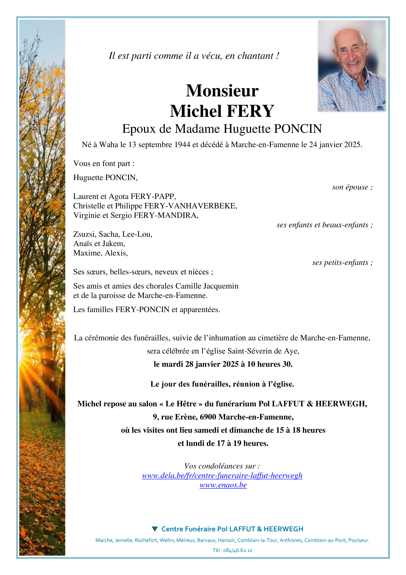 Décédé à Marche-en-Famenne (6900) le vendredi 24 janvier 2025 à l'âge de 80 ans