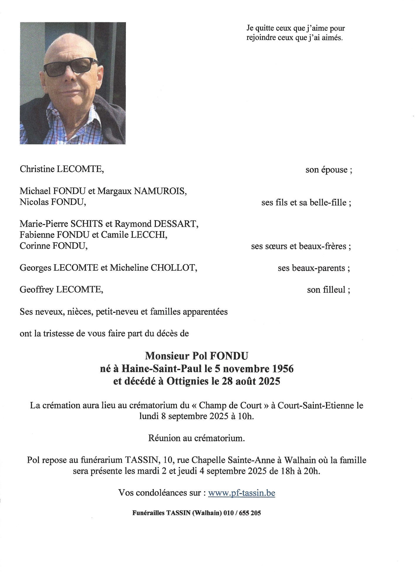 Died in Ottignies (1340) on 28 August 2025 at the age of 68 years