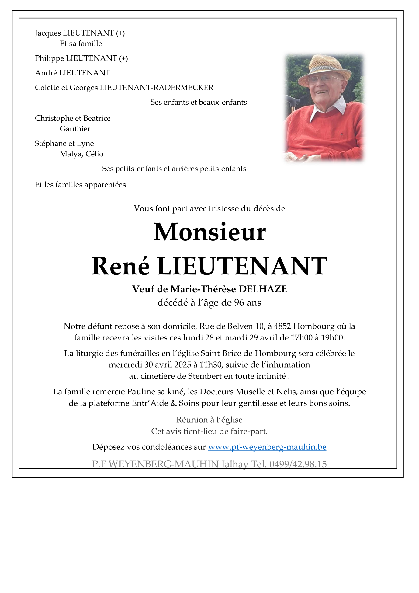 Overleden te Hombourg (4852) op vrijdag 25 april 2025 op 96-jarige leeftijd