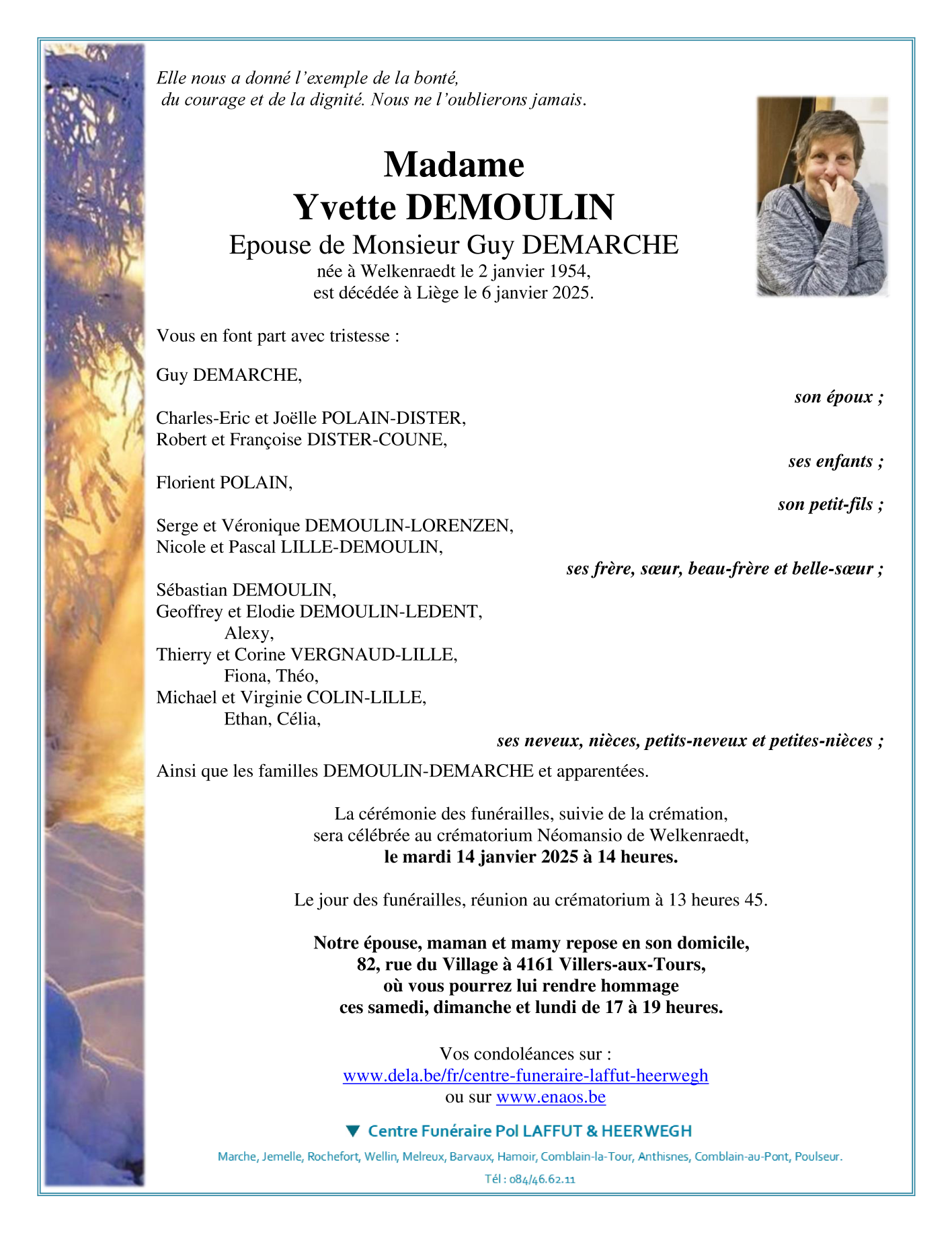 Décédée à Liège (4000) le lundi 6 janvier 2025 à l'âge de 71 ans