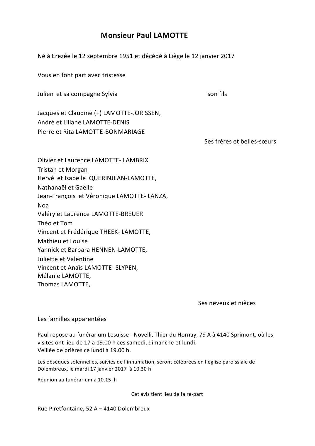 Monsieur Paul LAMOTTE