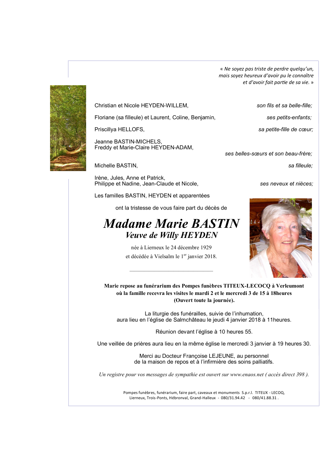 Overleden te Vielsalm (6690) op maandag 1 januari 2018 op 88-jarige leeftijd