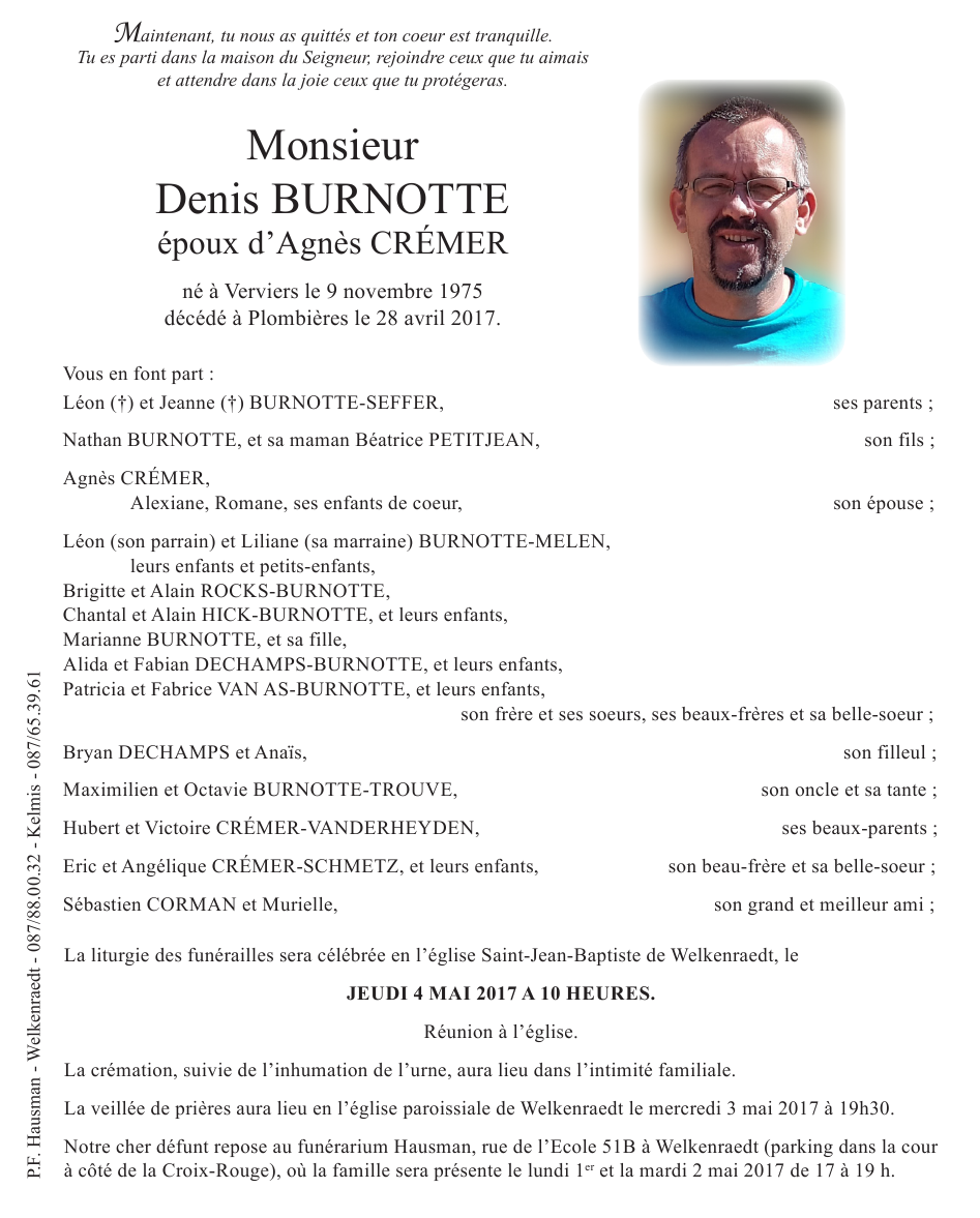 Fallecido en Montzen (4850) el viernes, 28 de abril de 2017 a la edad de 41 años