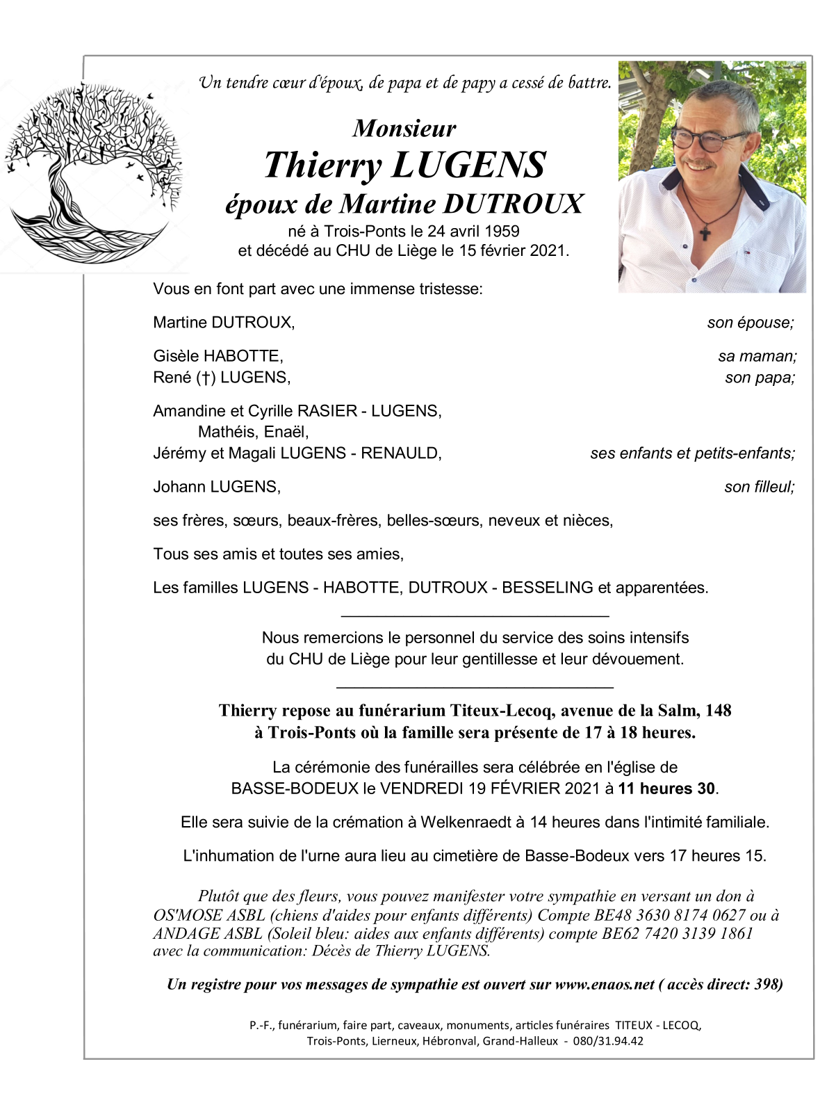 Décédé à Liège (4000) le lundi 15 février 2021 à l'âge de 61 ans
