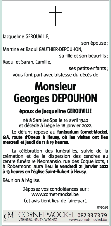 Overleden te Liège (4000) op dinsdag 18 januari 2022 op 81-jarige leeftijd