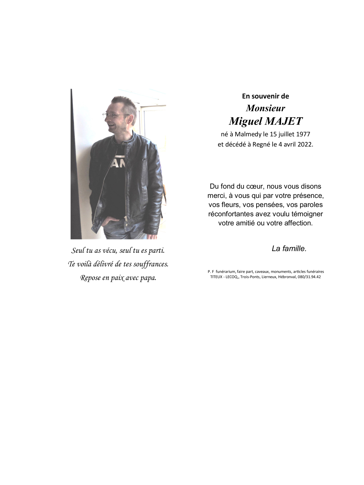 Overleden te Regné (6690) op maandag 4 april 2022 op 44-jarige leeftijd