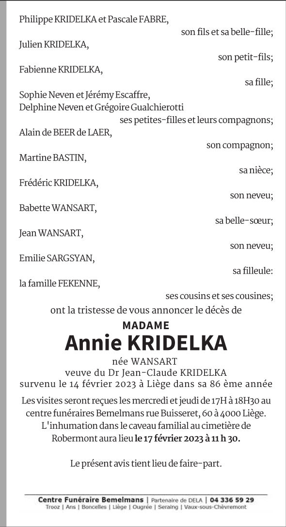 Décédé à Liège (4020) le mardi 14 février 2023 à l'âge de 86 ans