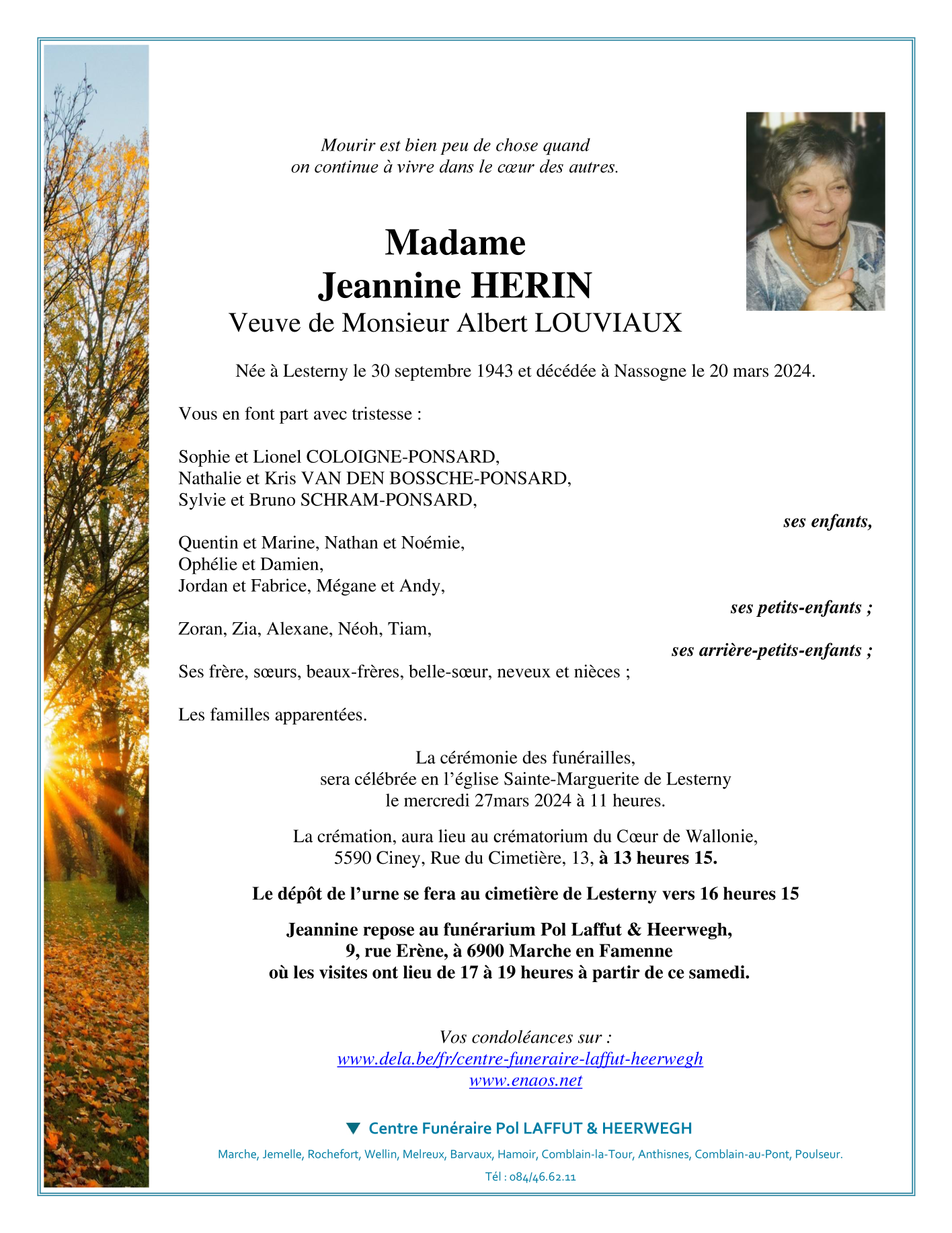 Died in Nassogne (6950) on 20 March 2024 at the age of 80 years