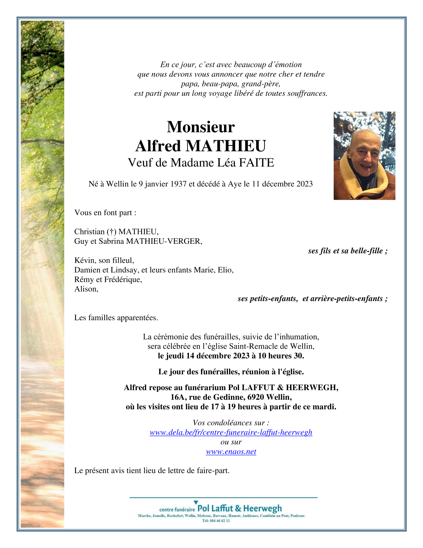 Veuf de Madame Léa FAITE