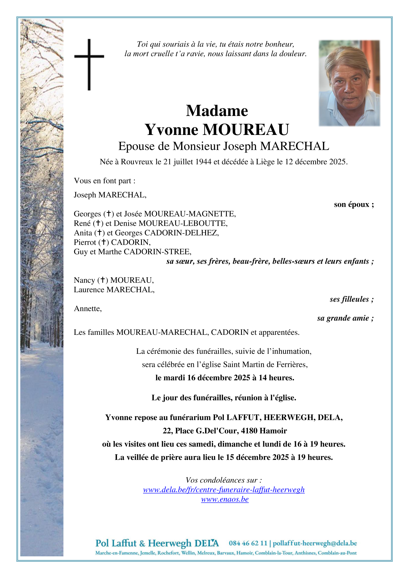 Fallecida en Liège (4000) el viernes, 12 de diciembre de 2025 a la edad de 81 años
