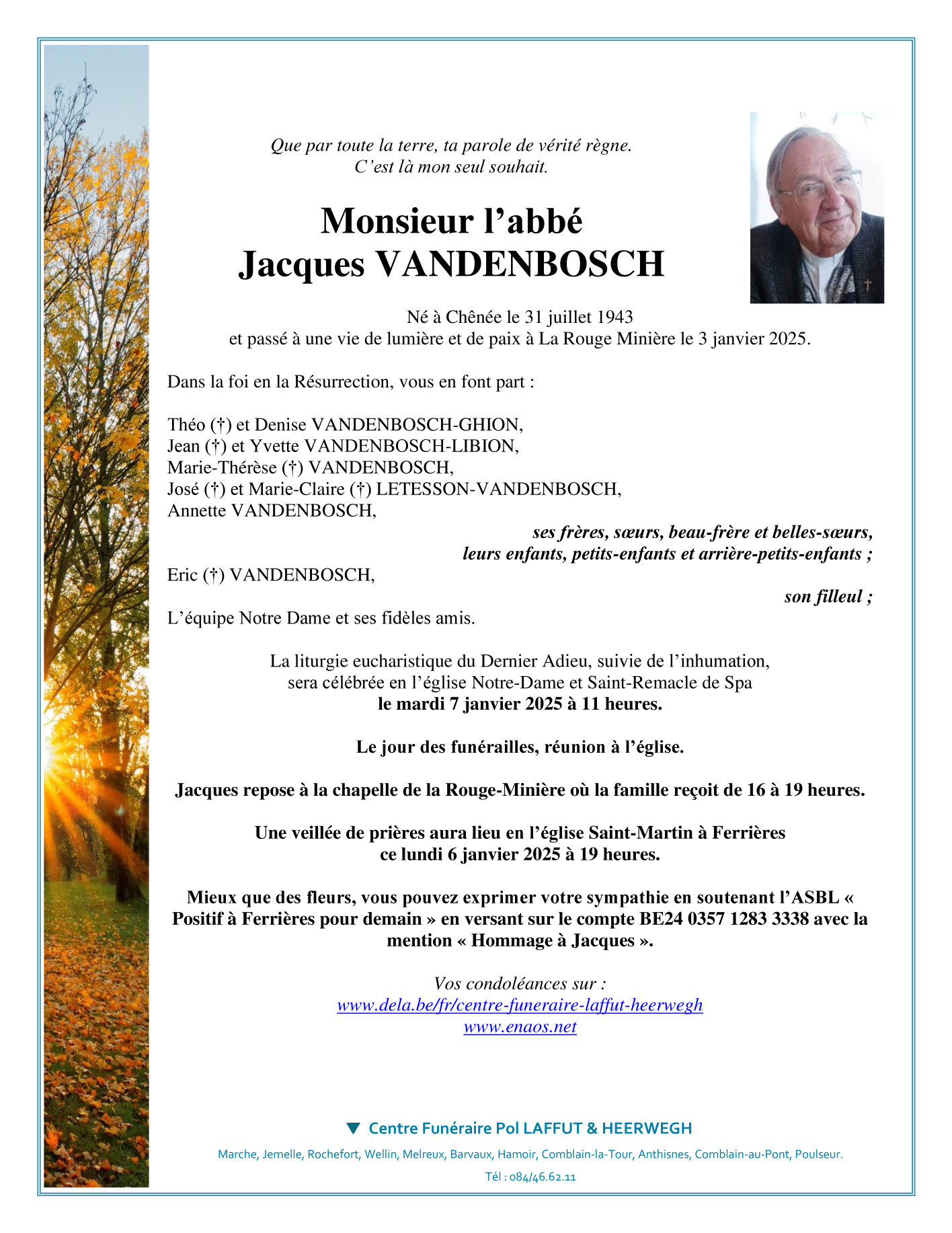 Overleden te Rouge-Minière (4190) op vrijdag 3 januari 2025 op 81-jarige leeftijd