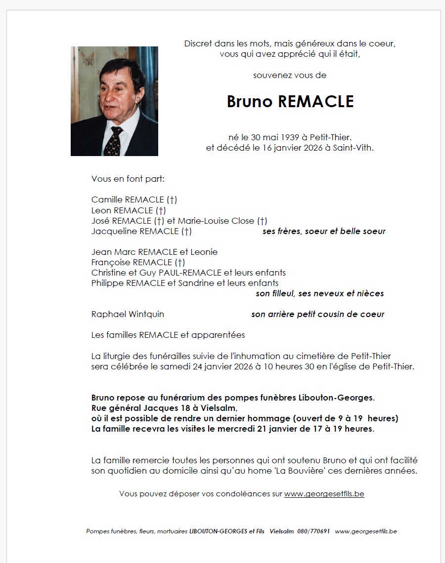 Décédé à Saint-Vith (4780) le vendredi 16 janvier 2026 à l'âge de 86 ans