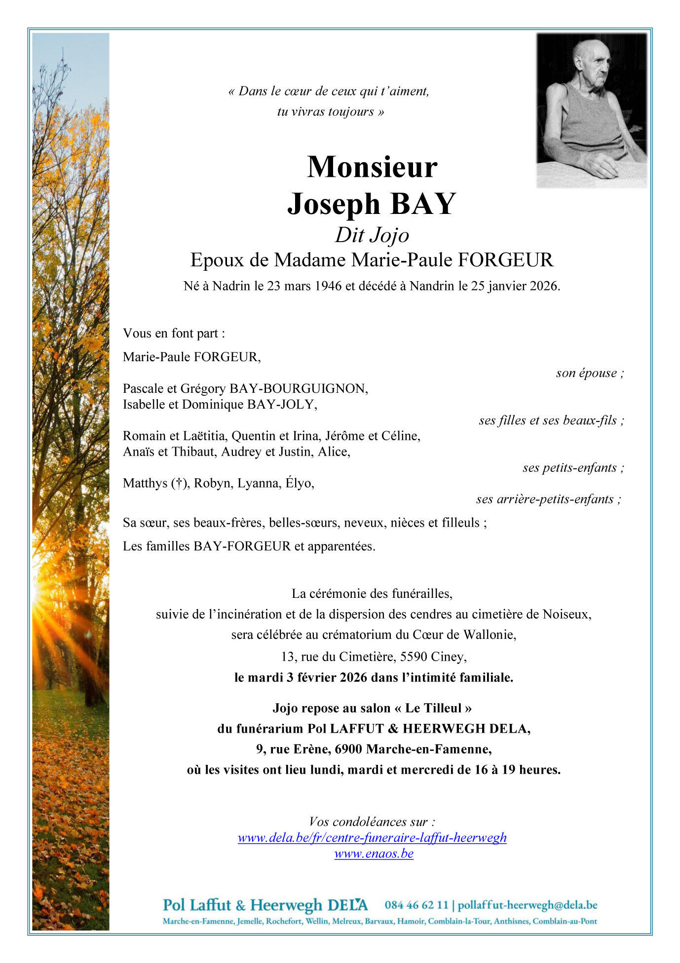 Died in Nandrin (4550) on 25 January 2026 at the age of 79 years