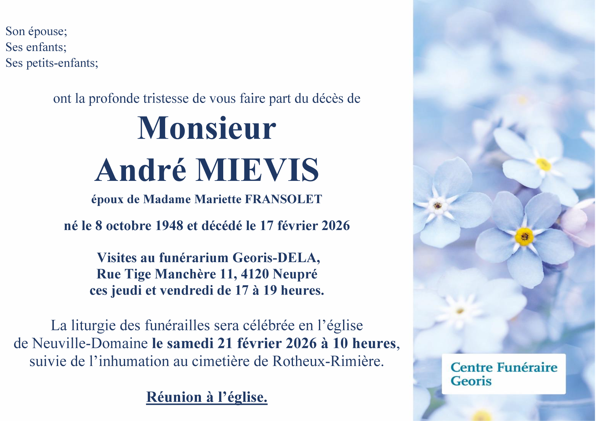 Décédé à Chênée (4032) le mardi 17 février 2026 à l'âge de 77 ans