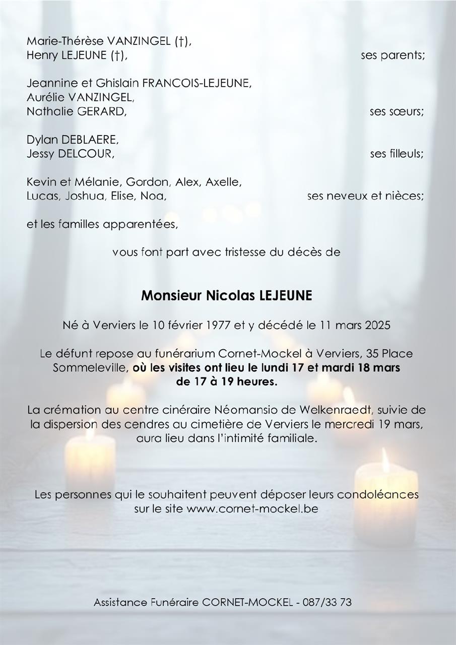 Died in Verviers (4800) on 11 March 2025 at the age of 48 years