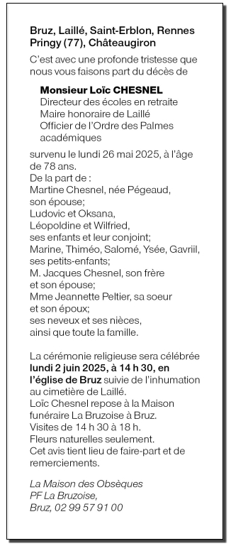 Décédé à Rennes (35000, France) le lundi 26 mai 2025 à l'âge de 78 ans