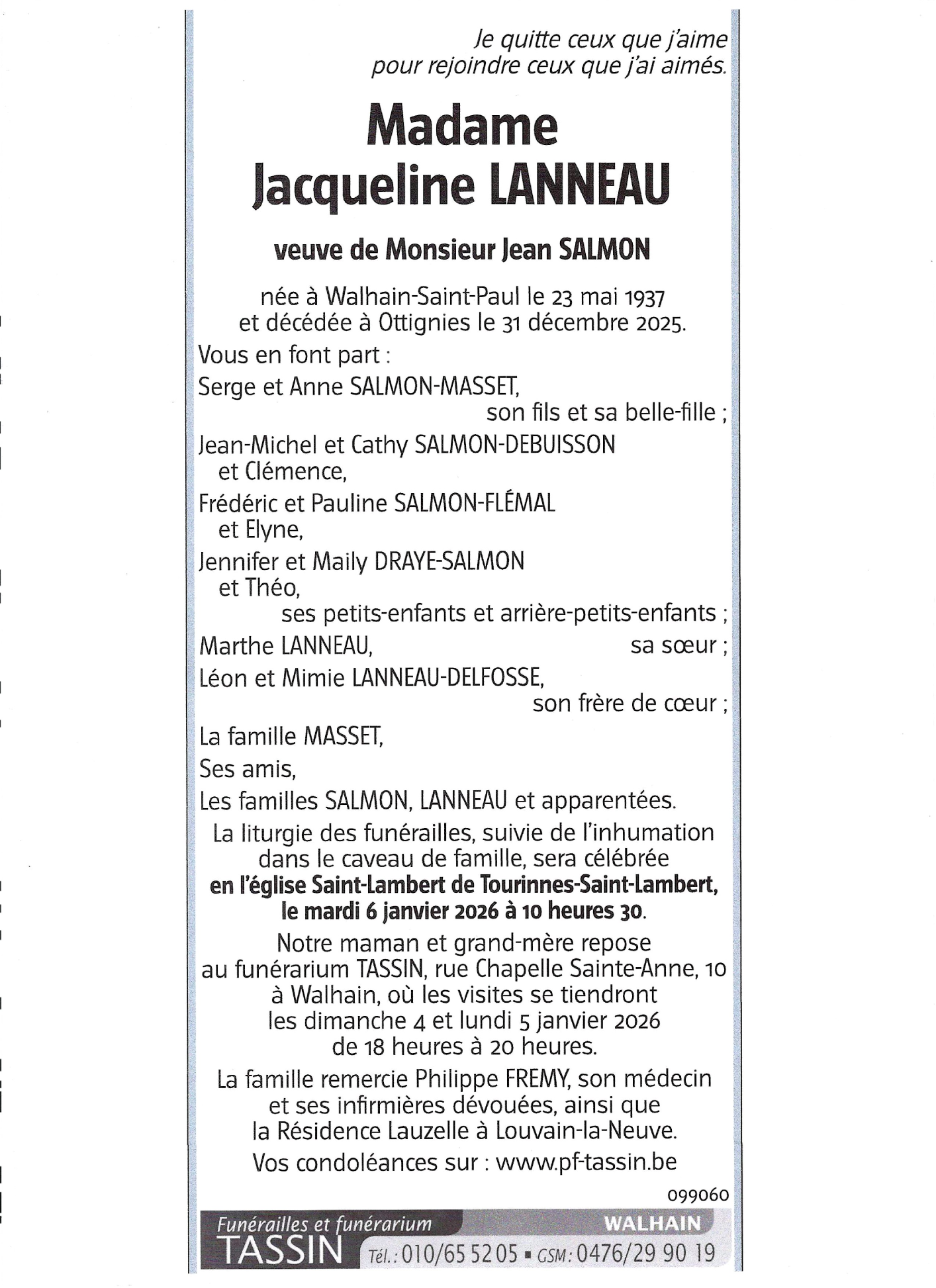 Décédée à Ottignies (1340) le mercredi 31 décembre 2025 à l'âge de 88 ans