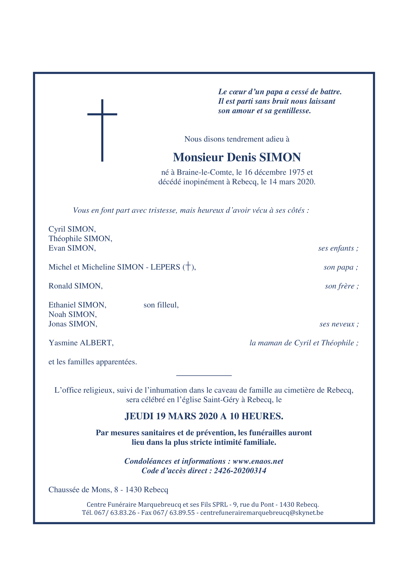 Died in Quenast (1430) on 14 March 2020 at the age of 44 years