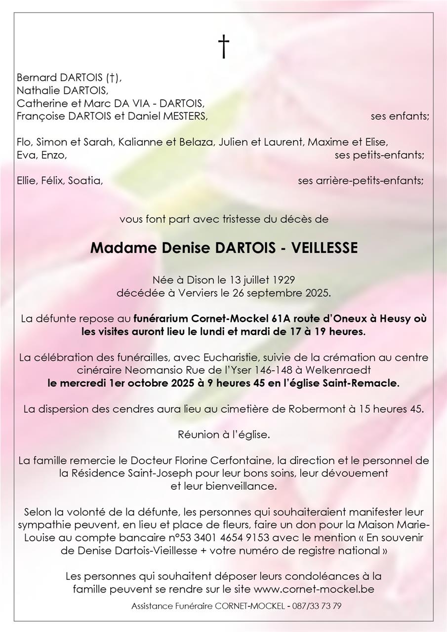 Décédée à Verviers (4800) le vendredi 26 septembre 2025 à l'âge de 96 ans