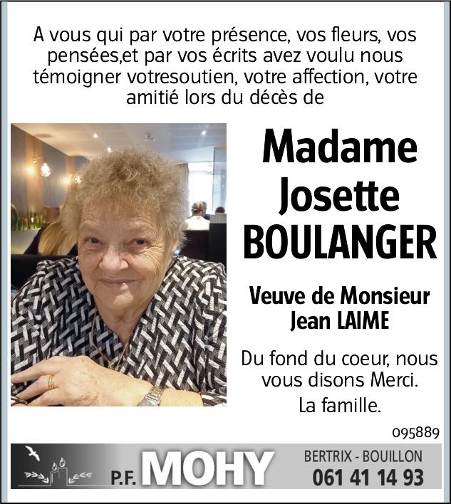 Fallecida en Bouillon (6830) el domingo, 19 de octubre de 2025 a la edad de 88 años