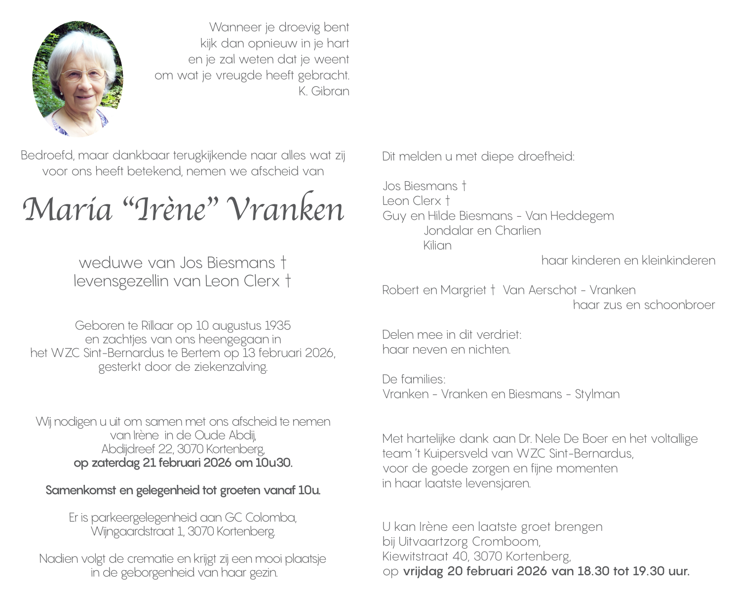 Overleden te Bertem (3060) op vrijdag 13 februari 2026 op 90-jarige leeftijd