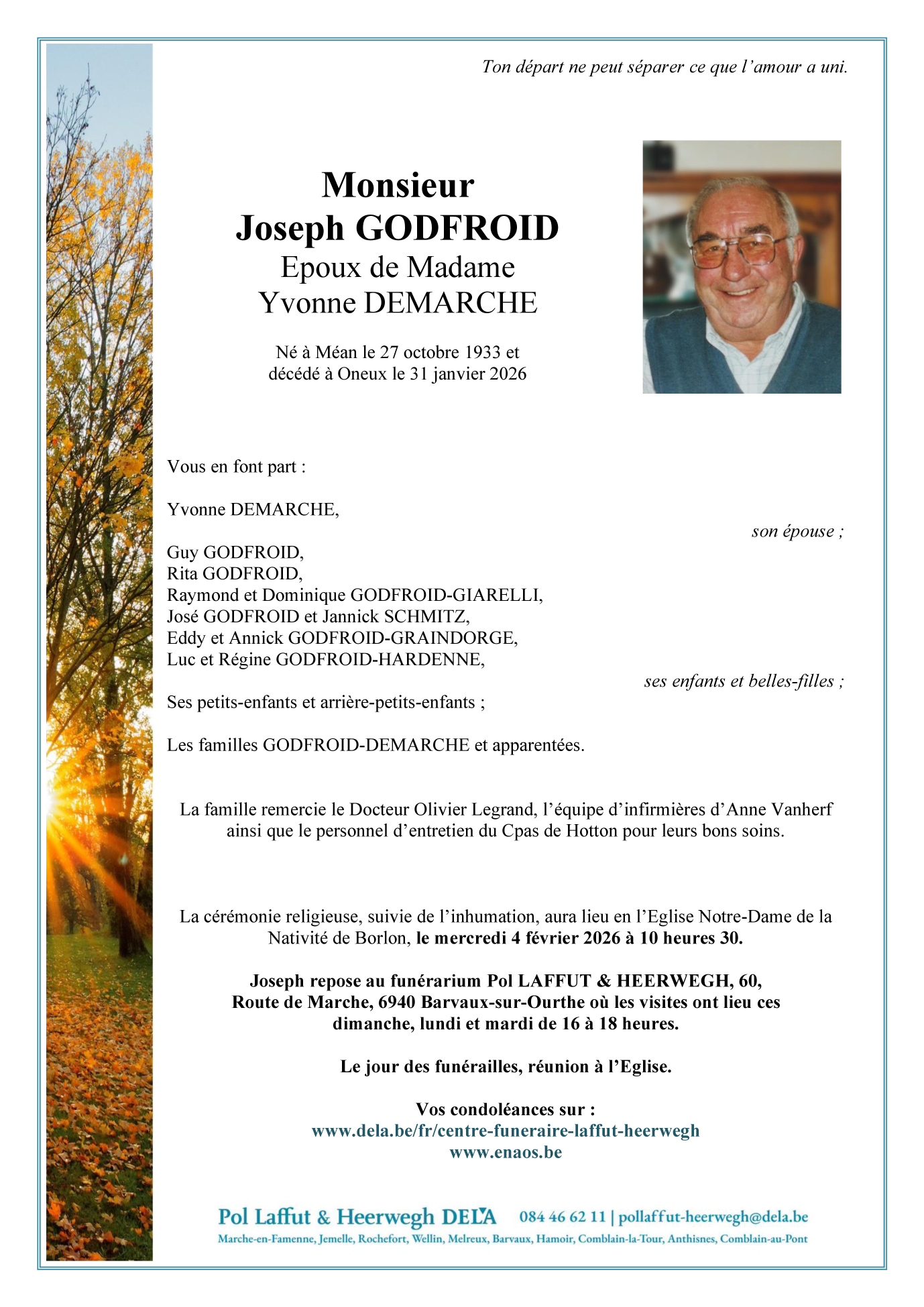 Décédé à Borlon (6941) le samedi 31 janvier 2026 à l'âge de 92 ans