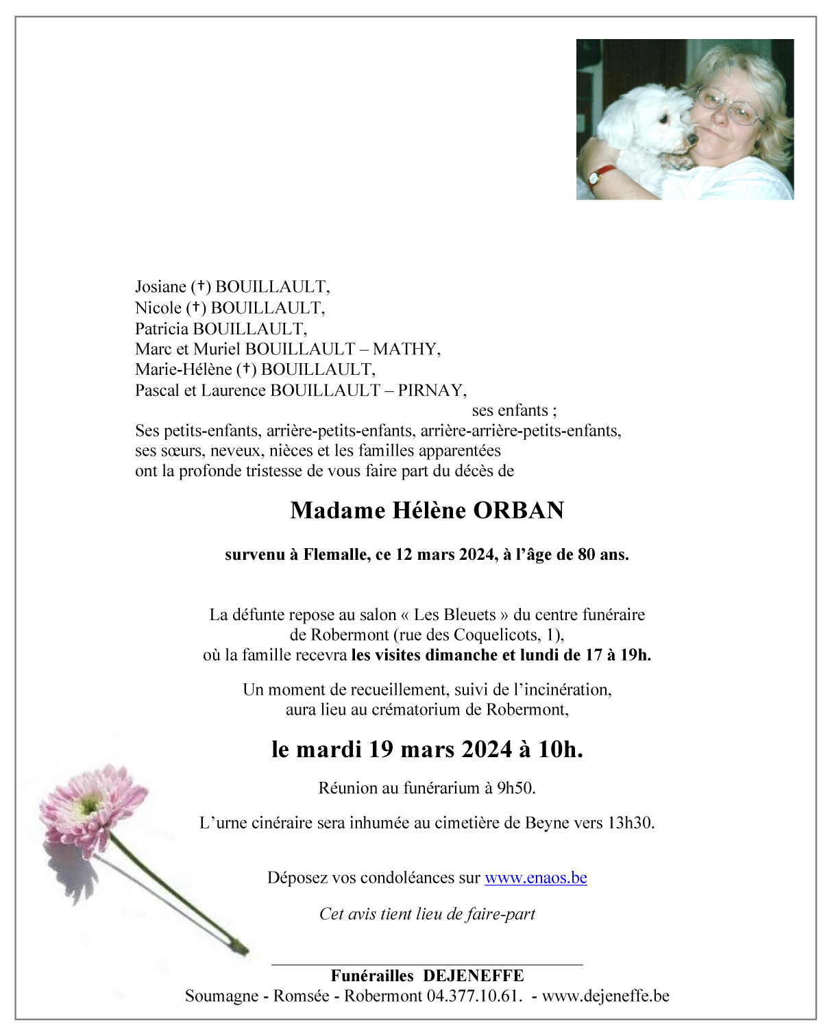 Overleden te Flémalle (4400) op dinsdag 12 maart 2024 op 80-jarige leeftijd