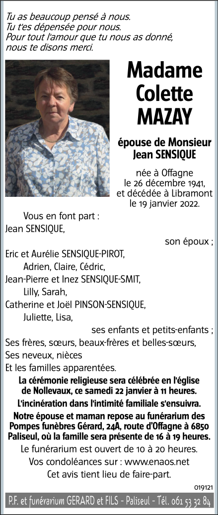 Overleden te Libramont (6800) op woensdag 19 januari 2022 op 80-jarige leeftijd