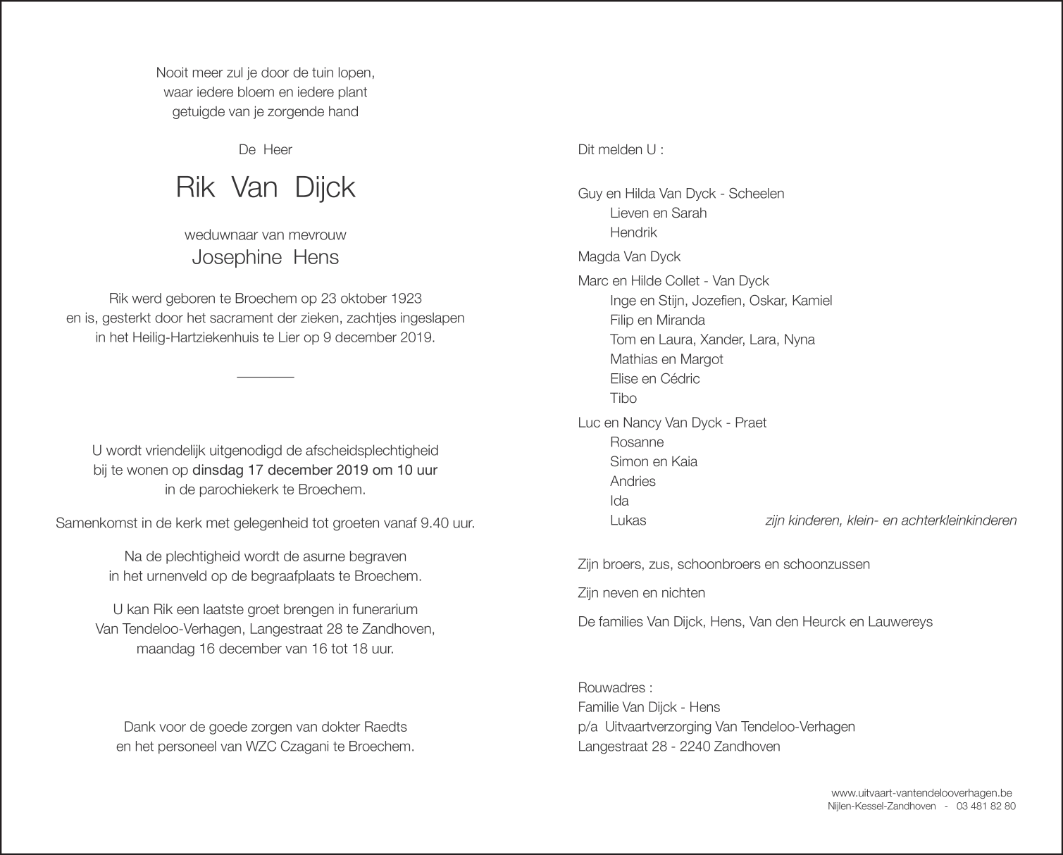 Overleden te Lier (2500) op maandag 9 december 2019 op 96-jarige leeftijd