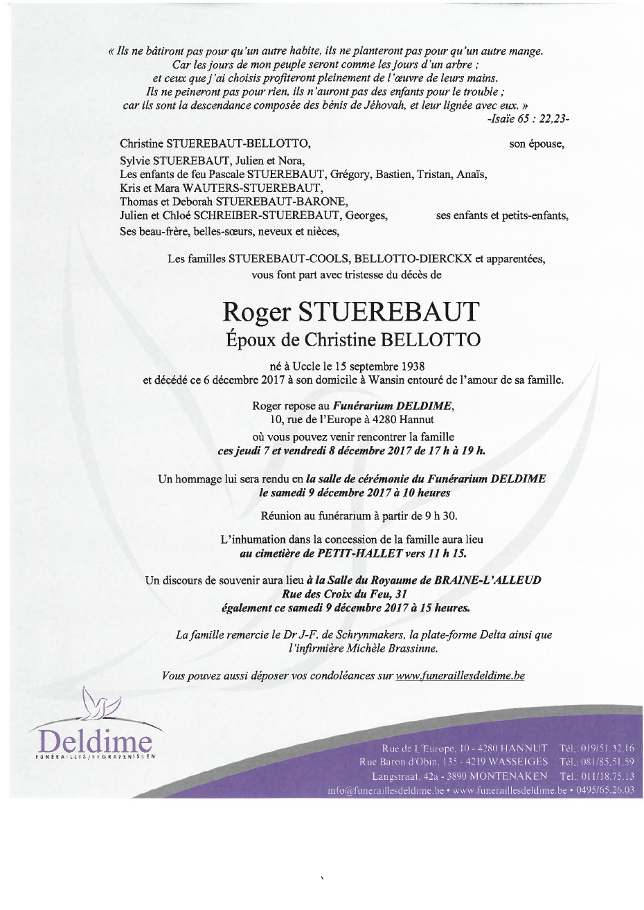 Overleden te Wansin (4280) op woensdag 6 december 2017 op 79-jarige leeftijd