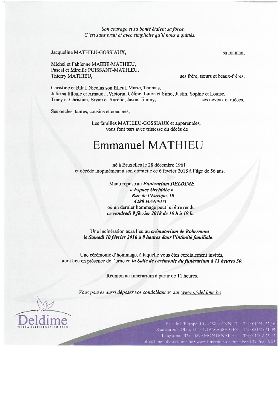 Died in Latinne (4261) on 06 February 2018 at the age of 56 years