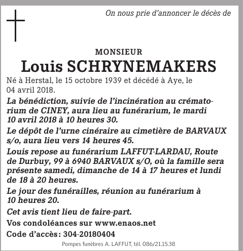 Décédé à Marche-en-Famenne (6900) le vendredi 6 avril 2018 à l'âge de 78 ans