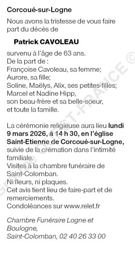 Décédé à Nantes (44000, France) le jeudi 5 mars 2026 à l'âge de 63 ans