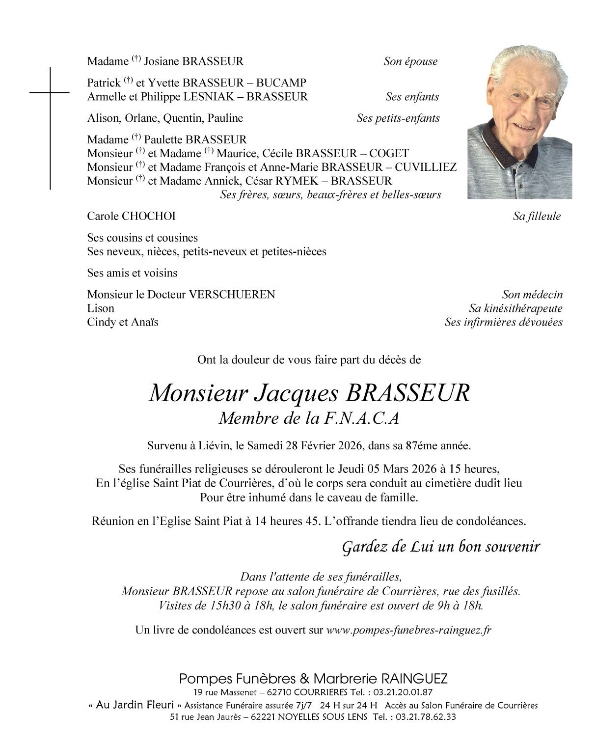 Veuf de Madame Josiane BRASSEUR