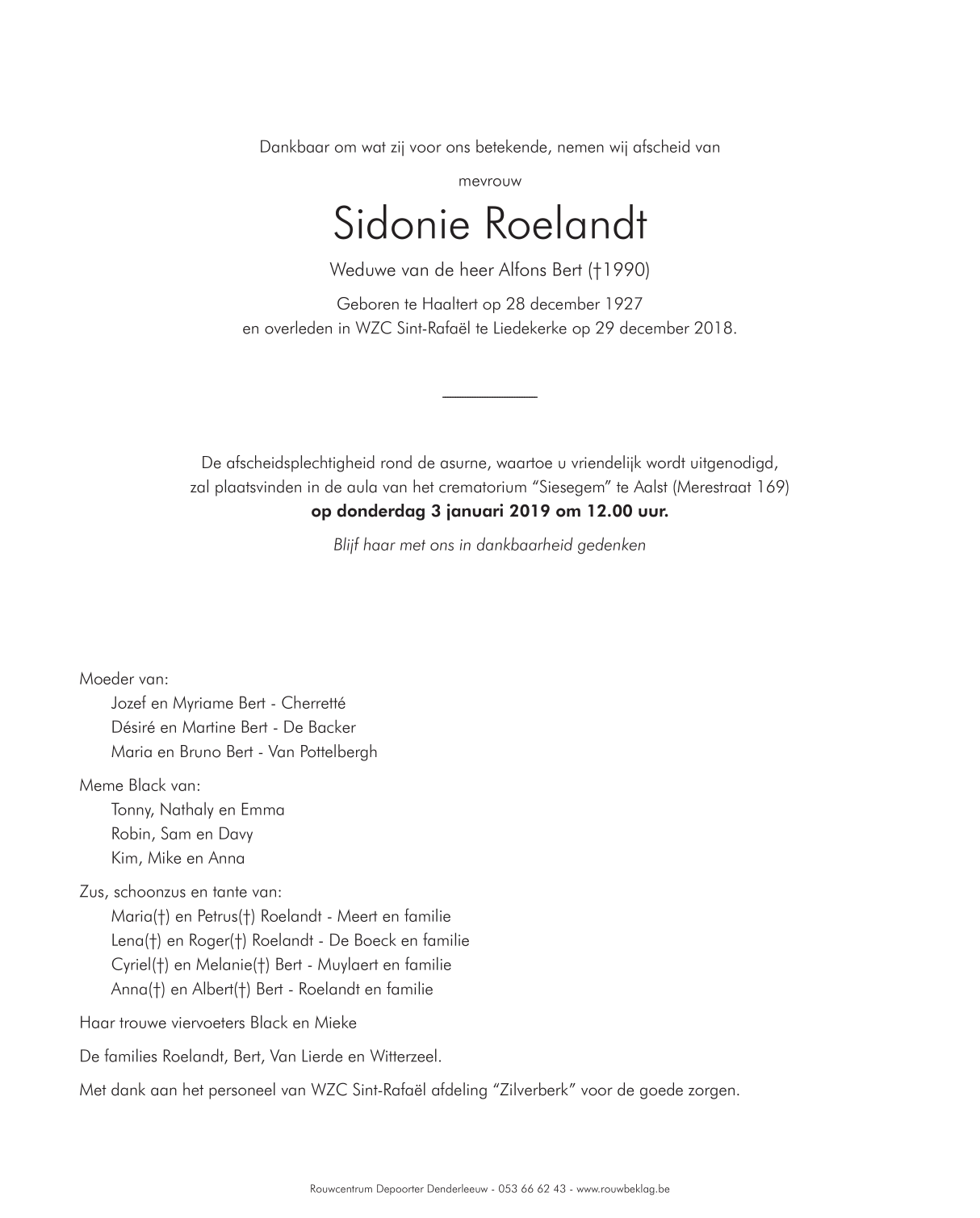 Died in Liedekerke (1770) on 29 December 2018 at the age of 91 years