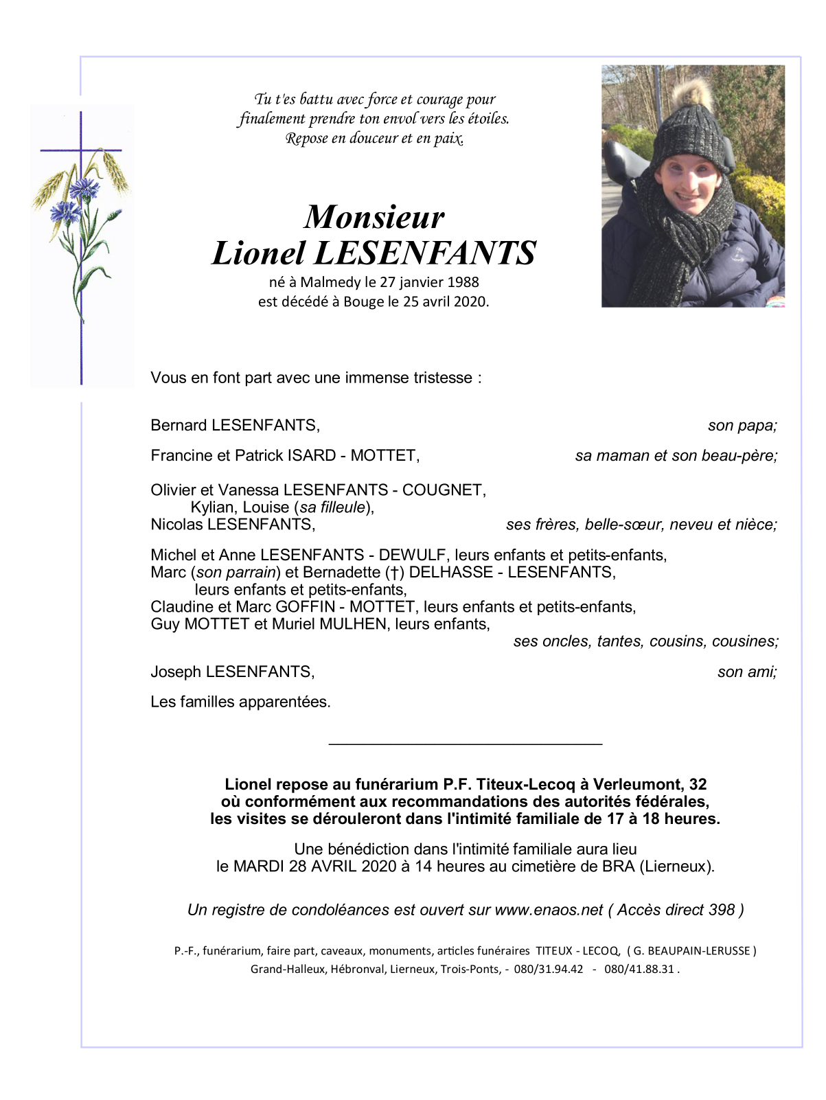 Overleden te Bouge (5004) op zaterdag 25 april 2020 op 32-jarige leeftijd
