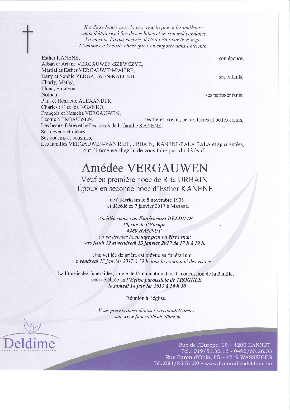 Overleden te Manage (7170) op zaterdag 7 januari 2017 op 78-jarige leeftijd