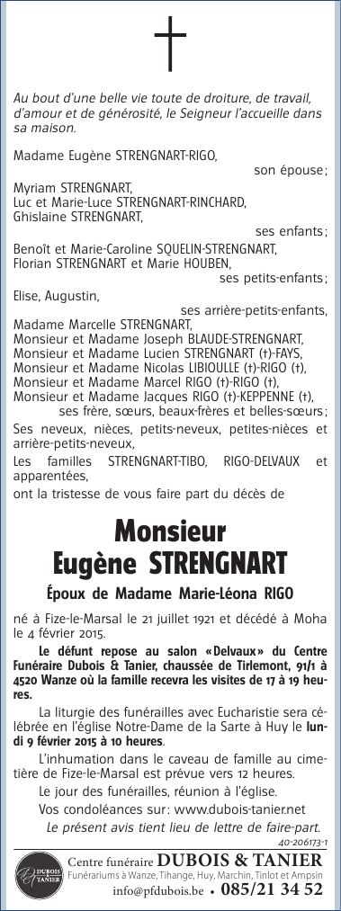 Décédé à Moha (4520) le mercredi 4 février 2015 à l'âge de 93 ans