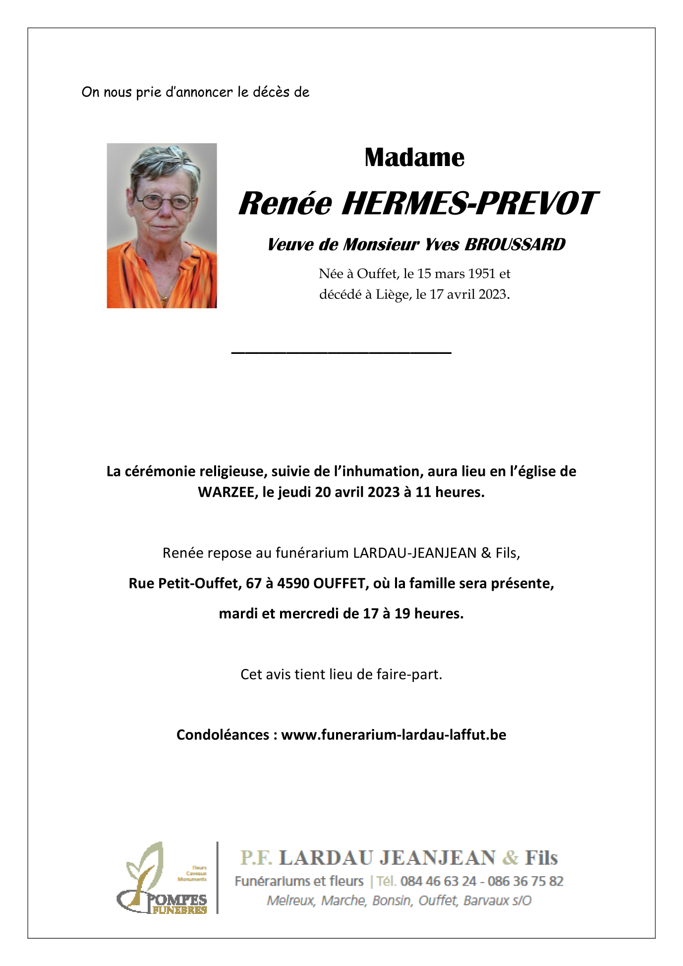 Madame Renée HERMES-PREVOT