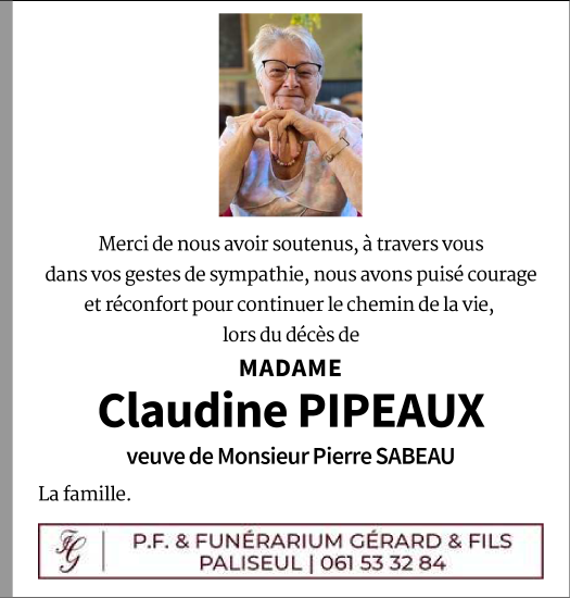 Décédée à Naomé (5555) le mardi 10 mars 2026 à l'âge de 78 ans