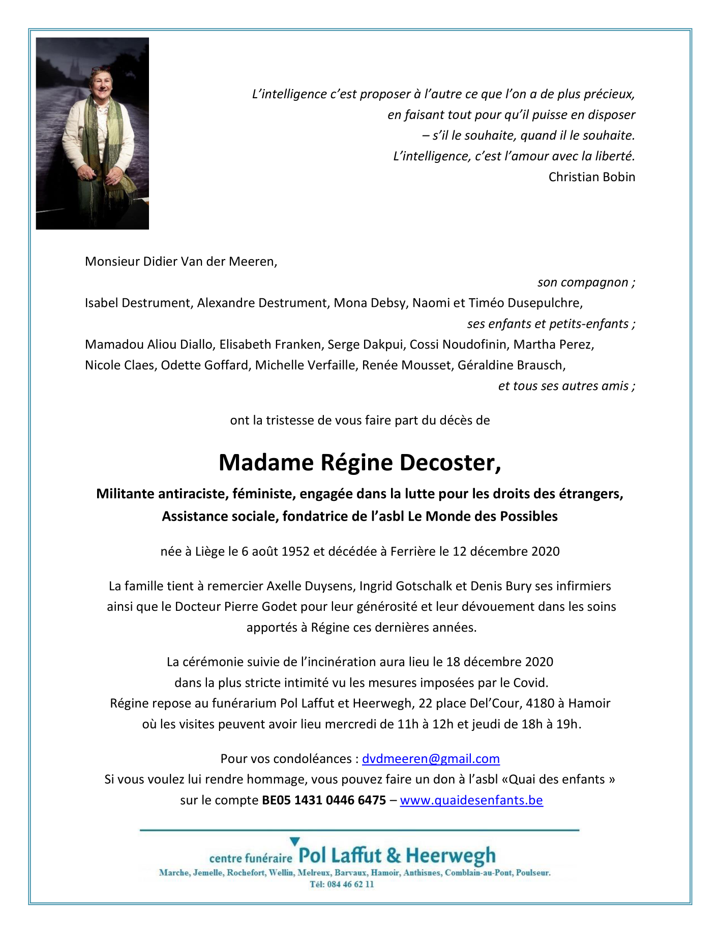 Madame Régine DECOSTER