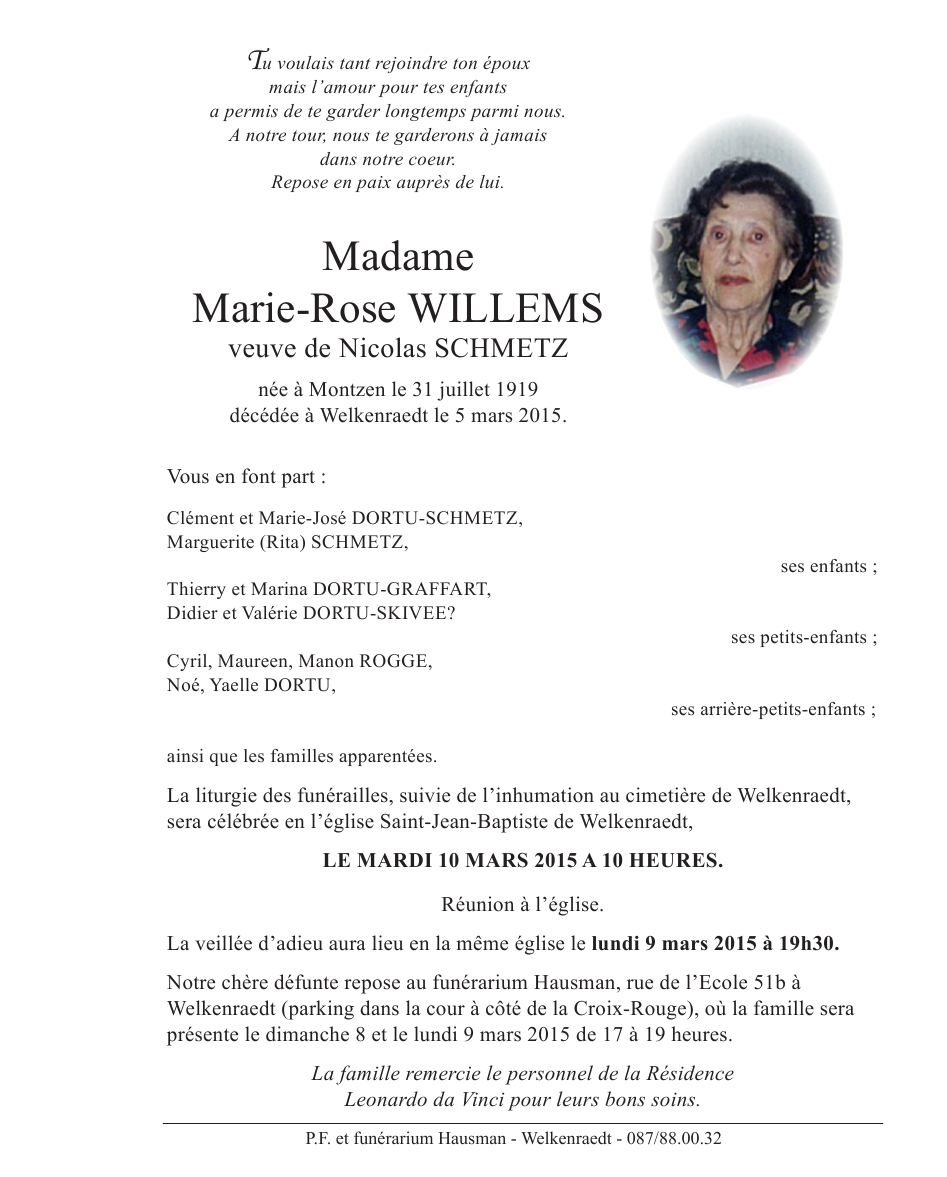Madame Marie Rose WILLEMS