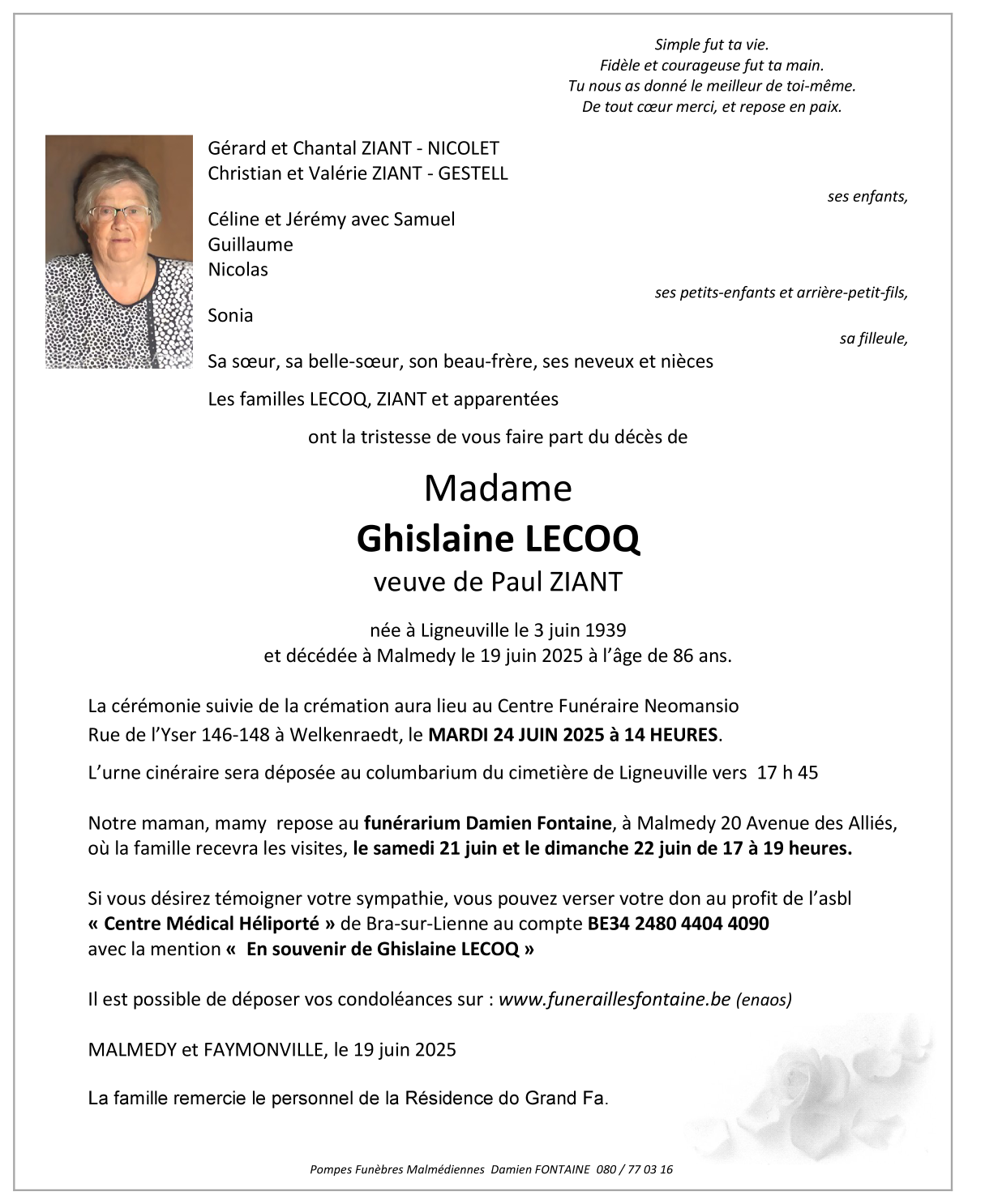 Overleden te Malmedy (4960) op donderdag 19 juni 2025 op 86-jarige leeftijd