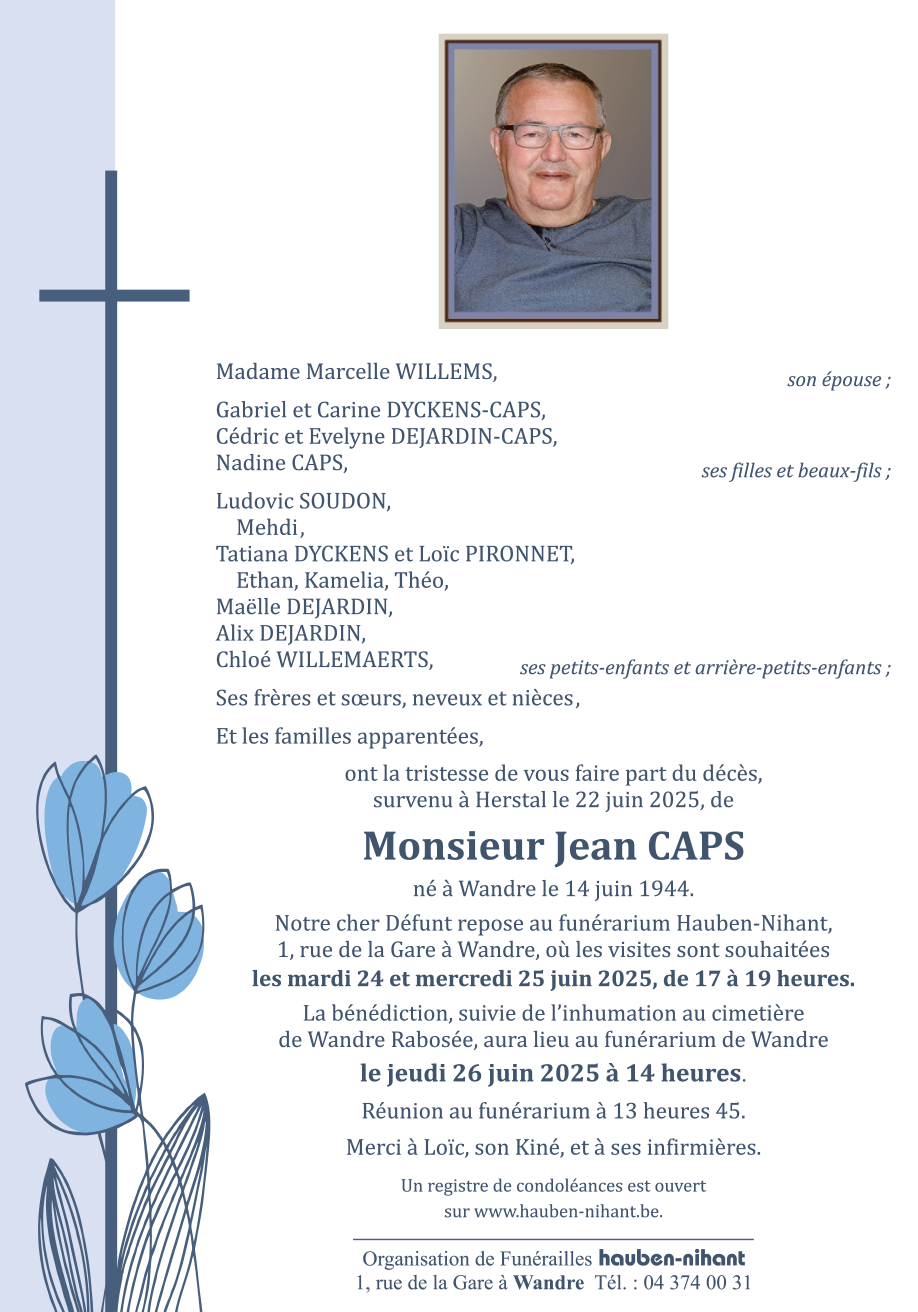 Décédé à Herstal (4040) le dimanche 22 juin 2025 à l'âge de 81 ans