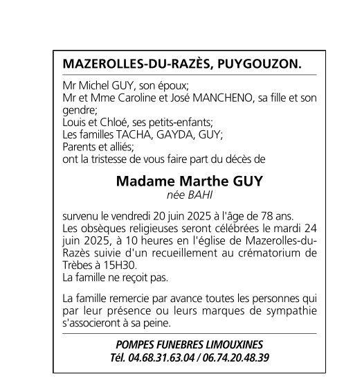 Née à Limoux (11300, France) le lundi 24 février 1947