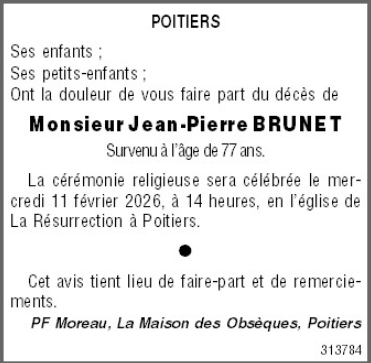 Décédé à Nouaillé-Maupertuis (86340, France) le mercredi 4 février 2026 à l'âge de 77 ans