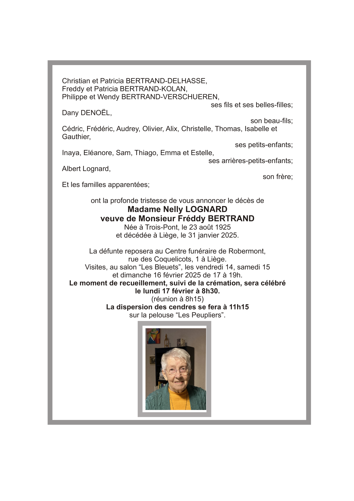 Died in Chênée (4032) on 31 January 2025 at the age of 99 years