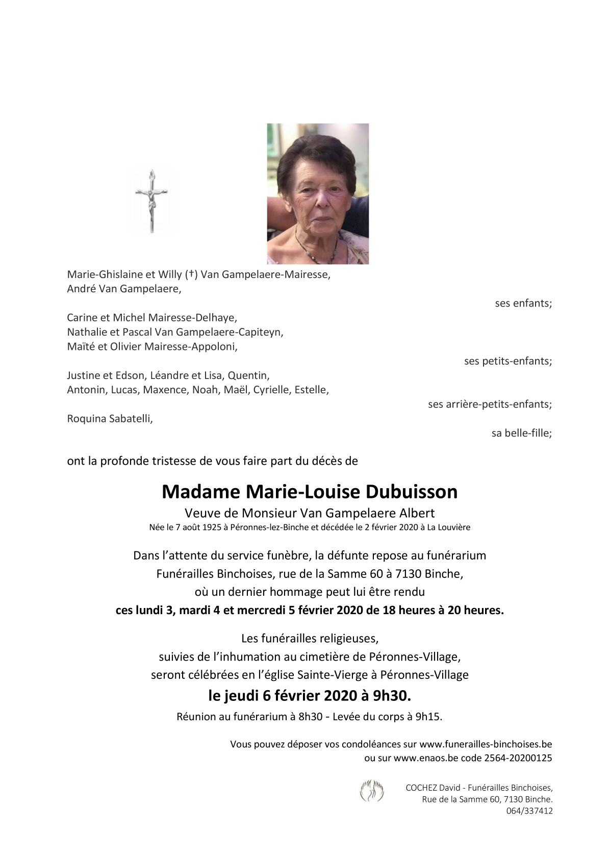 Madame Marie-Louise VAN GAMPELAERE née DUBUISSON